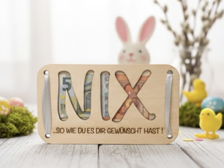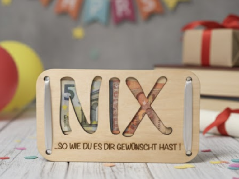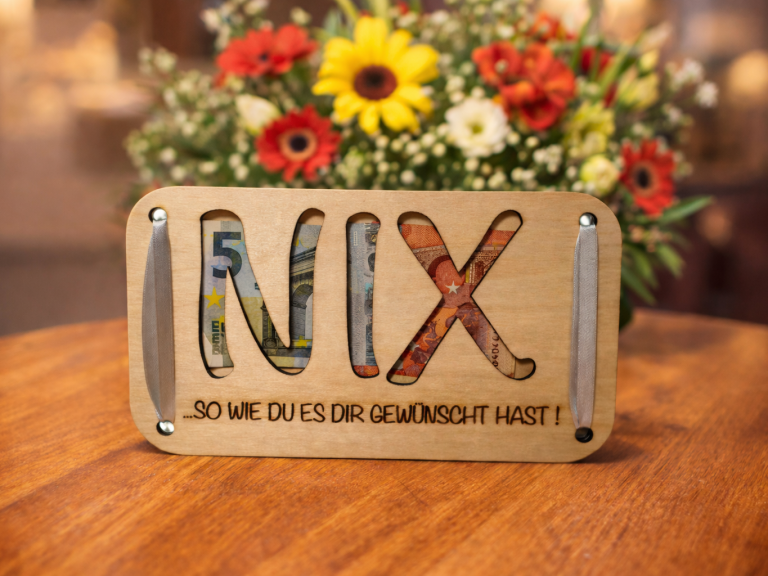 Mit unserem originellen NIX-Geldgeschenk aus Holz verschenkst du trotzdem etwas Persönliches, Kreatives und mit Herz.